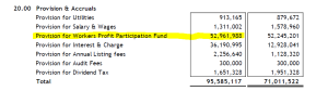 এদিকে নিরীক্ষক আরও জানিয়েছে, কোম্পানির আর্থিক প্রতিবেদনে প্রভিশন বা নিরাপত্তা সঞ্চিতি হিসেবে ওয়ার্কার্স প্রফিট পার্টিসিপেশন ফান্ডের (ডব্লিউপিপিএফ) জন্য ৫ কোটি ২৯ লাখ ৬১ হাজার ৯৮৮ টাকা দেখানো হয়েছে। কিন্তু বাংলাদেশ শ্রম আইন ২০০৬ এর ধারা ২৩৪ অনুসারে ওয়ার্কার্স প্রফিট পার্টিসিপেশন ফান্ড, ওয়ার্কার্স ওয়েলফেয়ার ফান্ড এবং লেবার ওয়েলফেয়ার ফাউন্টেশন ফান্ডে যথাক্রমে ৮০:১০:১০ অনুপাতে অর্থ বরাদ্দ রাখেনি কোম্পানিটি।