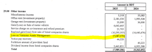 জানা গেছে, ক্রিস্টাল ইন্স্যুরেন্সের সহযোগি কোম্পানি ভেনচুরা অ্যাসেটস ম্যানেজমেন্ট। বিদায়ী বছরে (৩০ জুন ২০২৫) সহযোগি প্রতিষ্ঠানটিতে ক্রিস্টাল ইন্স্যুরেন্স লোকসান করেছে ৭০ লাখ ৮৭ হাজার ৫৭০ টাকা লোকসান।