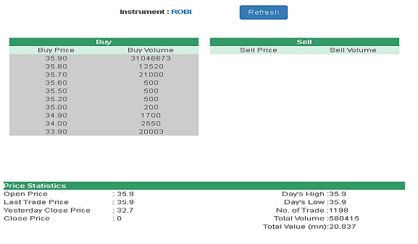 রবি আজ রোববার দুই স্টক এক্সচেঞ্জে ’এন’ ক্যাটাগরিতে লেনদেন শুরু করেছে। এদিন ঢাকা স্টক এক্সচেঞ্জে (ডিএসই) শেয়ারটির লেনদেন শুরু হয় ৩২.৭০ টাকা দরে।