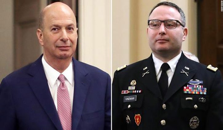 মার্কিন প্রেসিডেন্ট ডোনাল্ড ট্রাম্পের অভিশংসন শুনানির সময় সাক্ষ্য দেয়া দু’জনকে বরখাস্ত করা হয়েছে। অভিশংসন থেকে অব্যাহতি পাওয়ার দুইদিন পর শুক্রবার (৭ ফেব্রুয়ারি) রাষ্ট্রদূত গর্ডন সন্ডল্যান্ড ও সেনাবাহিনীর লেফটেন্যান্ট কর্নেল আলেকজান্ডার ভিন্ডম্যানকে পদচ্যুত করেন ট্রাম্প।
