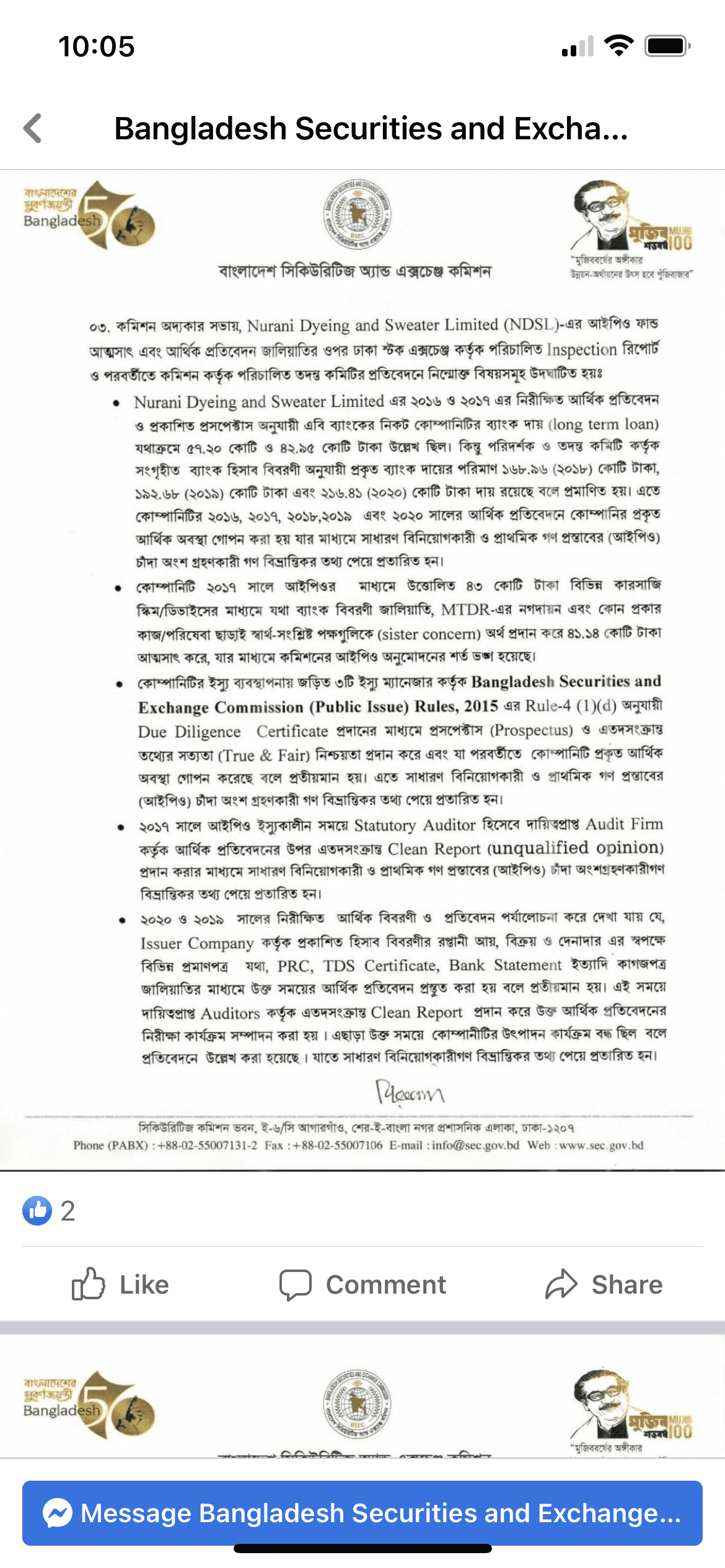 এছাড়া আইপিওর মাধ্যমে উত্তোলিত ৪৩ কোটি টাকার মধ্যে ৪১.১৪ কোটি টাকা আত্মসাত, ৩টি ইস্যু ম্যানেজার প্রতিষ্ঠান ডিউ ডিলিজেন্স সার্টিফিকেটের মাধ্যমে প্রকৃত অবস্থা গোপন করেছে, আইপিওকালীন ২০১৭ সালে নিরীক্ষক ক্লিন রিপোর্ট দিয়ে বিভ্রান্ত করেছে এবং ২০১৯ ও ২০২০ সালে জালিয়াতি সত্ত্বেও নিরীক্ষক ক্লিন রিপোর্ট দিয়ে বিনিয়োগকারীদের সঙ্গে প্রতারনা করেছে।