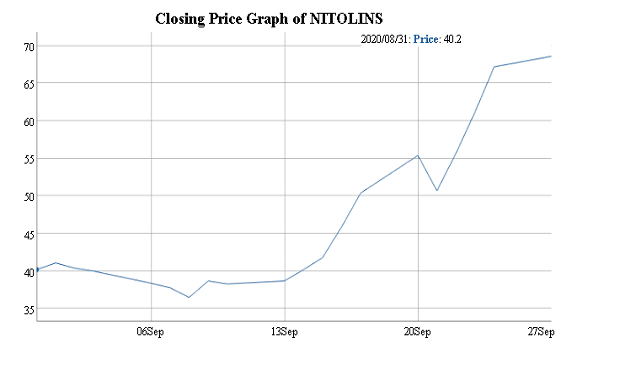 অন্যদিকে নিটল ইন্স্যুরেন্সের শেয়ার দর গত ৩১ আগস্ট ৪০ টাকা ২০ পয়সা ছিল। ২৭ সেপ্টেম্বর তা ৬৮ টাকা ৬০ পয়সায় উন্নীত হয়।