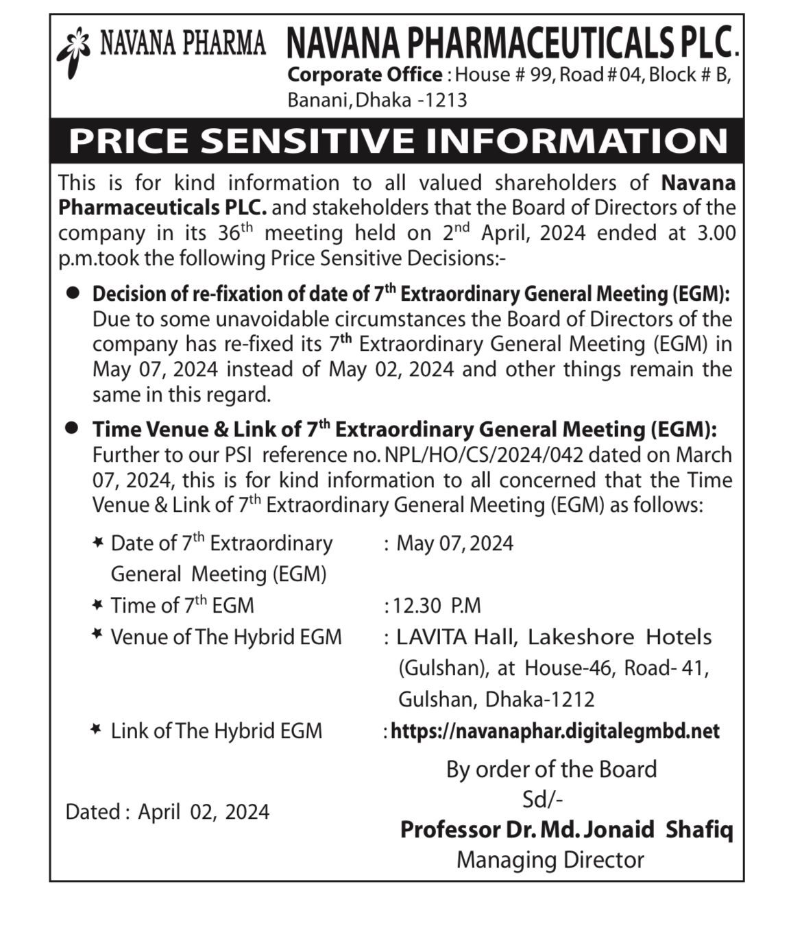 Homeপ্রাইস সেন্সিটিভ ইনফরমেশনPrice Sensitive Information: NAVANA PHARMACEUTICALS PLC Your browser does not support the video tag. Price Sensitive Information: NAVANA PHARMACEUTICALS PLC এপ্রিল ২, ২০২৪ Share FacebookTwitterPinterestWhatsApp Share FacebookTwitterPinterestWhatsApp Previous articleঈদের আগে বেকায়দায় বিনিয়োগকারীরাNext articleমঙ্গলবার দর বৃদ্ধির শীর্ষে যারা RELATED ARTICLES প্রাইস সেন্সিটিভ ইনফরমেশন Price Sensitive Information (Dividend): Nitol Insurance PLC এপ্রিল ১, ২০২৬ প্রাইস সেন্সিটিভ ইনফরমেশন Price Sensitive Information: Pubali Bank PLC মার্চ ১১, ২০২৬ প্রাইস সেন্সিটিভ ইনফরমেশন Price Sensitive Information: Pubali Bank PLC মার্চ ১১, ২০২৬ Most Popular ইস্টার্ন ব্যাংকের ডিভিডেন্ড ঘোষণা এপ্রিল ১৫, ২০২৬ বোর্ড সভার তারিখ জানালো ইস্টল্যান্ড ইন্স্যুরেন্স এপ্রিল ১৫, ২০২৬ প্রতিদিন লেবু পানি খেলে যেসব উপকার হয় এপ্রিল ১৫, ২০২৬ ইউসিবি-এসএমই ফাউন্ডেশনের চুক্তি, ক্ষুদ্র শিল্পে ৮ শতাংশ হারে ঋণ মিলবে এপ্রিল ১৫, ২০২৬ Load more Recent Comments